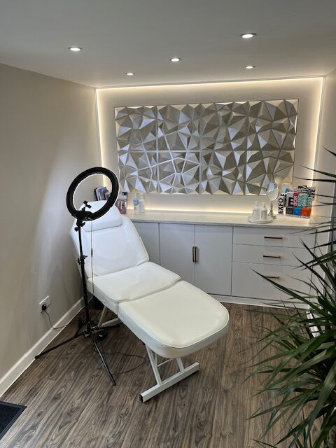 The treatment room combines the consultation and treatment area in one accommodating, peaceful and comfortable space. There is a comfortable, non-intimidating seating area for your chat and assessment with nurse Rebecca first, an area where clinical photos are taken for your patient journey and the treatment area.